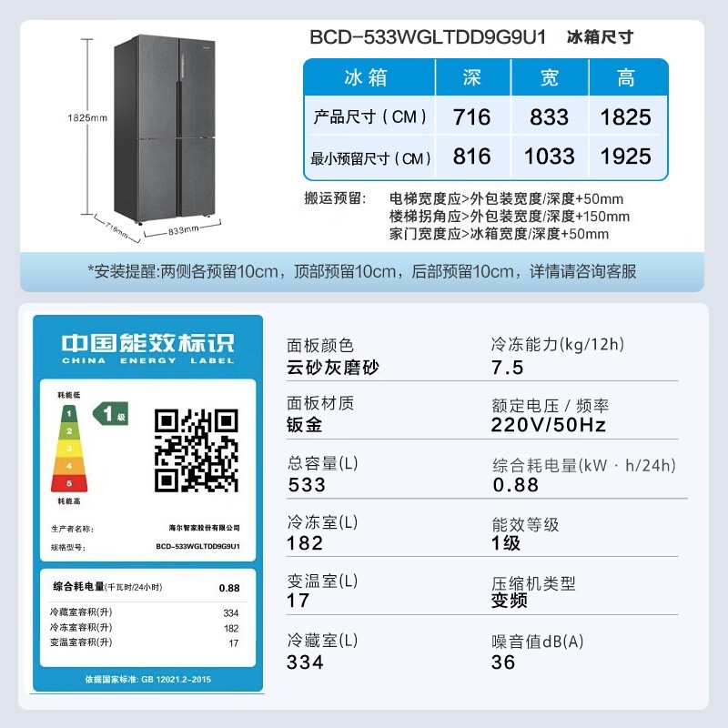 海尔统帅冰箱BCD - 533WGLTDD9G9U1超值促销